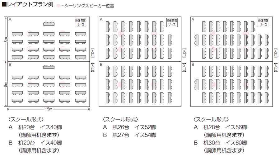 - 希望備品、会場レイアウトはお申込みの際にお伝えください。こちらで無料にて事前にセッティングいたします。
